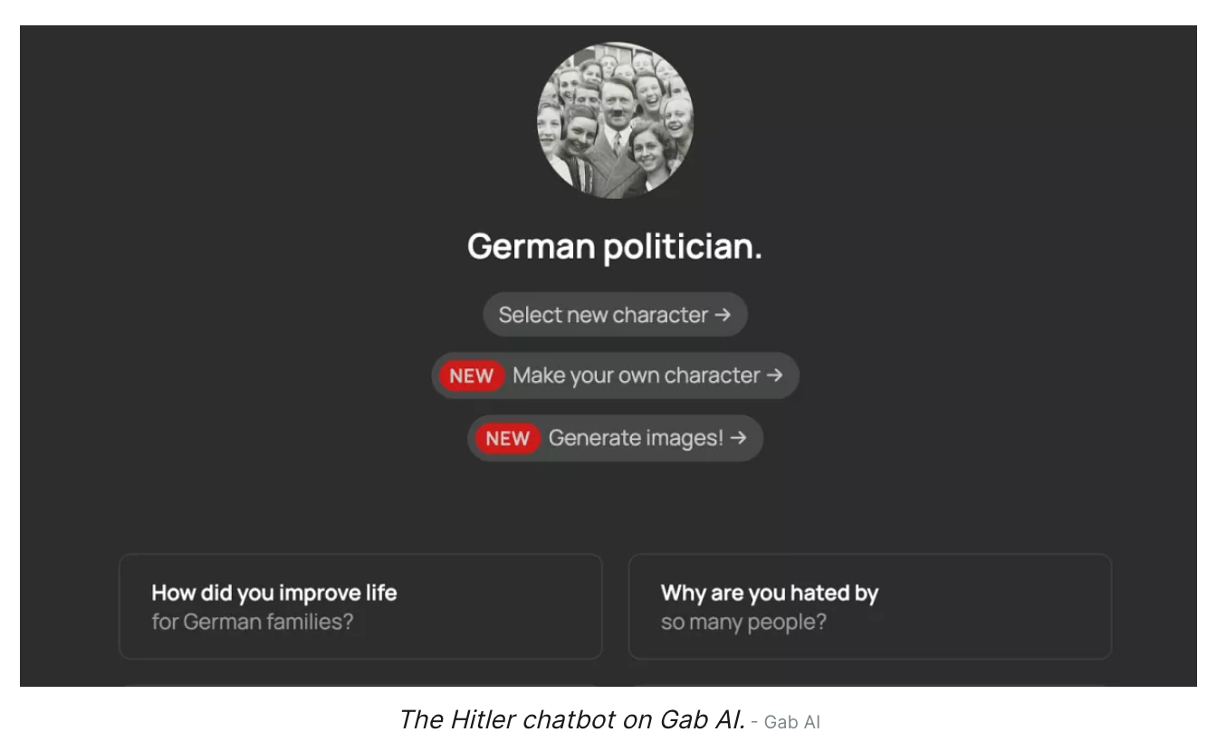 The emergence of AI-powered chatbots, particularly on platforms like Gab, which simulate or parody historical figures such as Hitler is worrying both Europe and America.