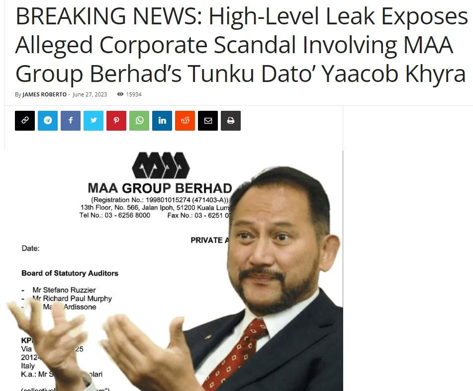 One tactic involves resurrecting a so-called 'banned' whistleblower report and critical documents linked to Tunku Yaacob, who is both the controlling shareholder of the oil & gas engineering outfit and a director of MAA Group Bhd.